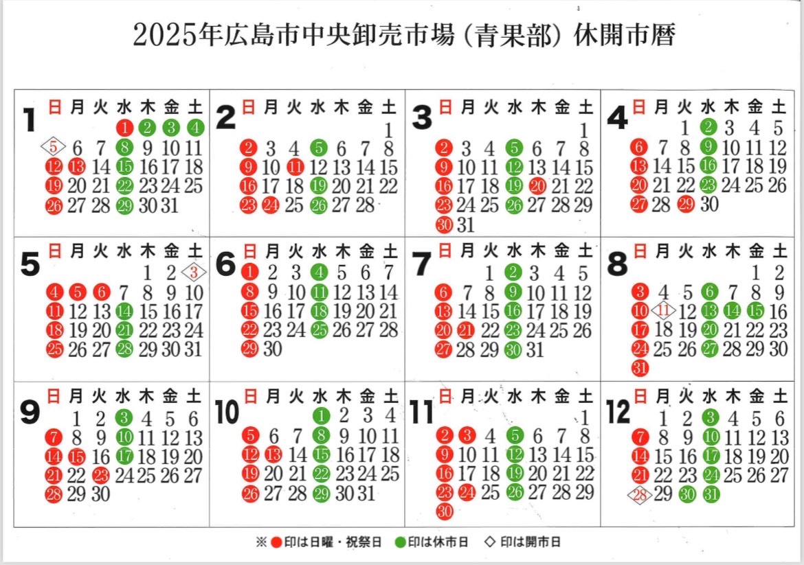 | 所在地 | 〒733-0832 広島県広島市西区草津港一丁目8番1号 広島市中央卸売市場 青果棟133 TEL.082-279-2285 |